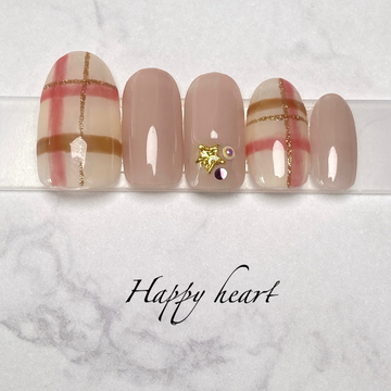 <10月限定>秋らしいシアーカラーの優しいチェックネイルです♪