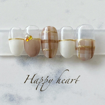 秋らしいチェック柄のネイルデザインです。ストーンのカラーをカラフルにして可愛くは華やかに♪