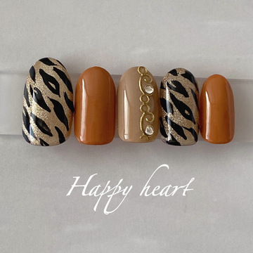 2022年の干支、トラ柄を入れたちょっぴりハードな大人ネイルです